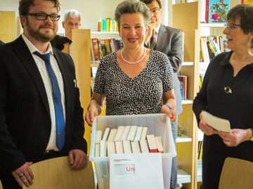 Am 12. Mai wurde die Schulbibliothek von Bildungsstadtrat Gerhard Hanke, Gisela Rhein von der Stadtbibliothek und unserer Schulleiterin Ulrike Kaufmann eröffnet. An mehreren Tagen der Woche (ein Plan mit den genauen Öffnungszeiten folgt) können die Schülerinnen und Schüler des Lily-Braun-Gymnasiums das breite Angebot nutzen. Dank großzügiger Spenden des Fördervereins, des Lions-Club und der AG Schulbibliotheken Berlin-Brandenburg gibt es neben Büchern auch Arbeitsplätze mit Internetzugang und Laptops. |