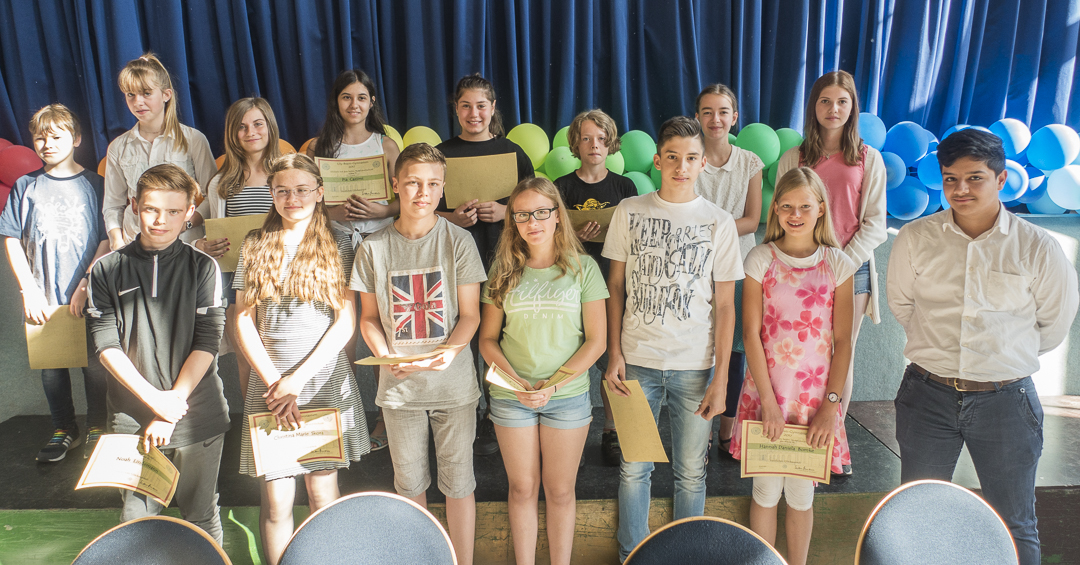 Zum Jahresabschluss lohnt es sich, noch einmal zurückzublicken, denn besonders tolle Leistungen sowie außerordentliches Engagement verdienen auch besondere Aufmerksamkeit. So ehrte Frau Kaufmann in der Aula die Schüler*innen mit den besten Zeugnissen, wobei mehrere den sagenhaften Notendurchschnitt von 1,0 erreicht hatten.