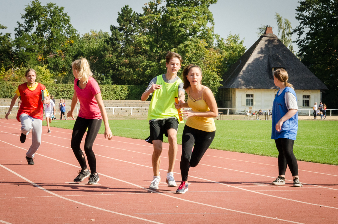 Am vergangenen Donnerstag fanden die diesjährigen Bundesjugendspiele im Stadion Hakenfelde statt. Während die Mittelstufe um Ehrenurkunden und den ersten Platz in der Team-Staffel rang, unterstützten die Schüler*innen der Oberstufe die Lehrkräfte beim Messen und Eintragen der erzielten sportlichen Leistungen. Unser Fotograf Herr Zimmermann begleitete seine 7. Klasse und die Staffelläufe mit der Kamera.