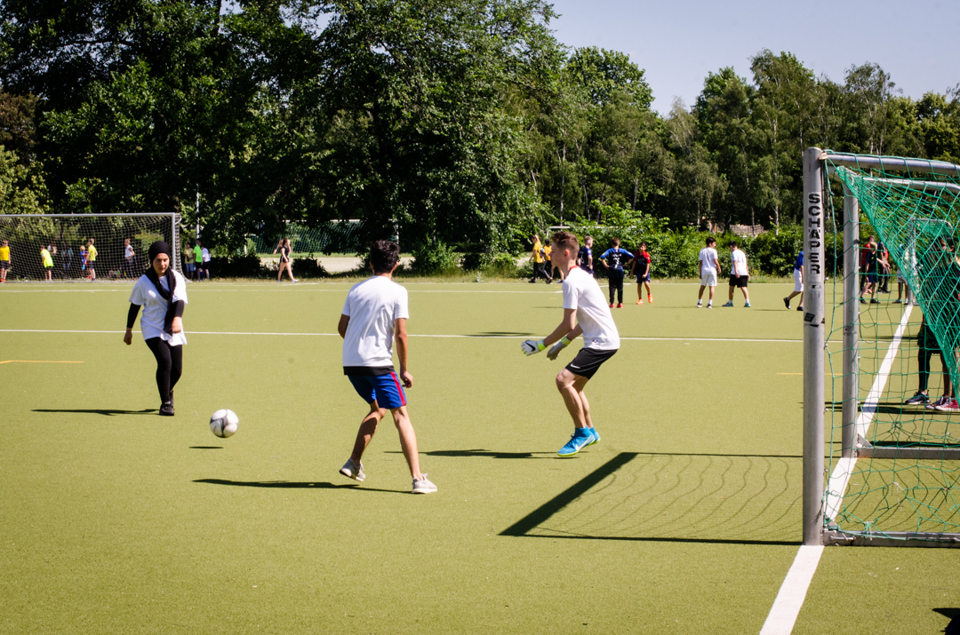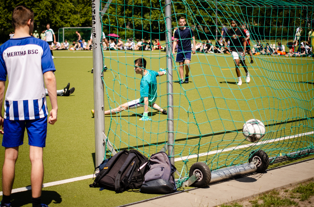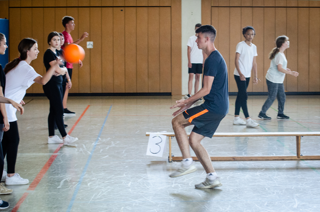 ...es gab spannende Begegnungen mit vollem Einsatz bis zur letzten Sekunde - sowohl draußen beim Fußball als auch beim Zwei-Felder-Ball in der Grüngürtel-Halle. Am Ende sicherten sich folgende Klassen die ersten Plätze in ihrem Jahrgang: 7cs, 8c, 9mf und die 10m. Das 2. Semester wurde Gesamtsieger im Fußball und eine Schülerauswahl der Oberstufe besiegte das Lehrerteam im Zwei-Felder-Ball.