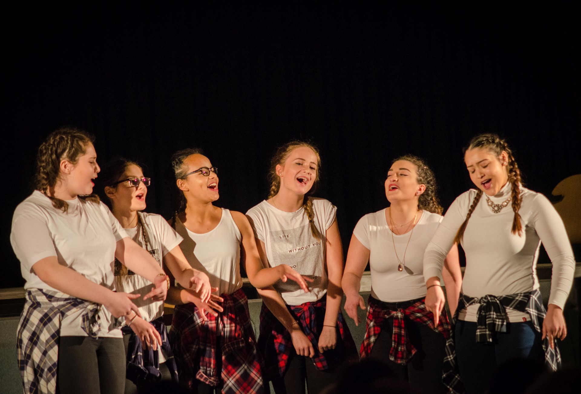 Es trat erstmals auch eine Solo-Tänzerin auf: Alina aus dem 2. Semester zeigte eine Choreographie zu einem Lied aus dem Musik-Genre „K-Pop“; Jacqueline, eine mutige Sängerin aus der 8c interpretierte den schwierigen Titel „ Jar of Hearts“ von Christina Perri und eine kleine Gruppe von Schülerinnen aus der 9 c präsentierte einen eigenen Mashup aus selbst gewählten Liedern und unter eigener Leitung.