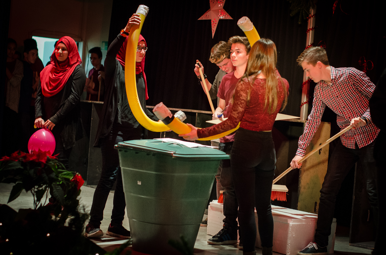 20161215 winterkonzert 2016 kleinAm 15.12. fand unser diesjähriges Winterkonzert statt. Die musikalische Bandbreite war diesmal besonders groß: Neben bekanntem Weihnachtsliedgut über klassische Klavierstücke schafften es auch ein chinesisches sowie ghanaisches Volkslied in das Abendprogramm. Die größte Überraschung war indes eine Eigenkomposition des Wahlpflichtkurses der Klasse 9, bei dem unter anderem ein Dutzend weihnachtlich roter Straßenbesen zum musikalischen Einsatz kamen. Lassen Sie anhand der Bilderstrecke den Abend Revue passieren.